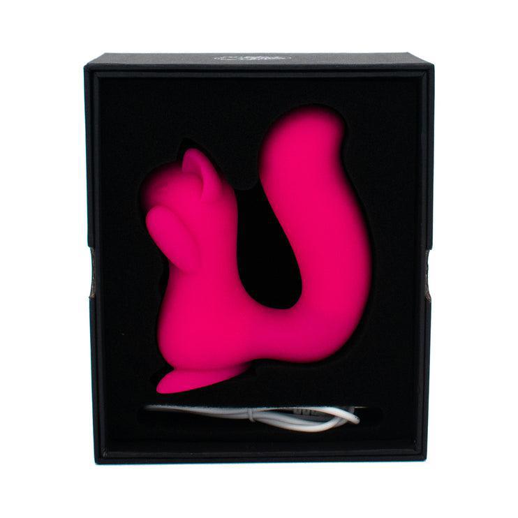Screaming Squirrel is a multi-function toy with air pulse and vibration capabilities. The mouth of the squirrel fits perfectly around sensitive areas such as the clitoris or nipples. Insert the tail and enjoy the curved design as it hits your G-spot or P-spot! Both motors are independently controlled for unlimited play options. The tail is flexible for superior comfort during use.