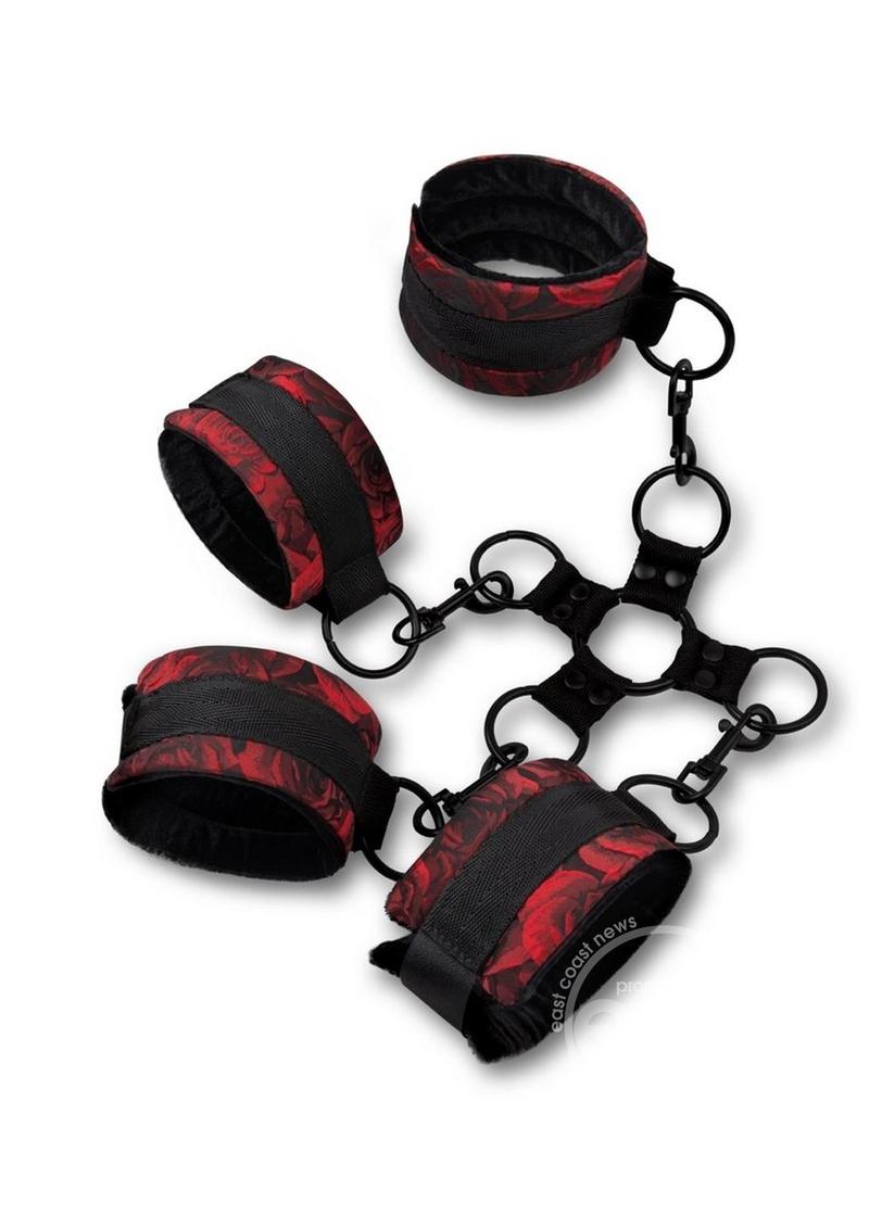 Get your submissive in a full-body bind with this 5-Piece Hogtie Set that sets the mood for kinky romance. A center four-way connector allows you to clip on the four adjustable, cushioned straps that secure with Velcro fasteners that are secure yet easy to remove.
