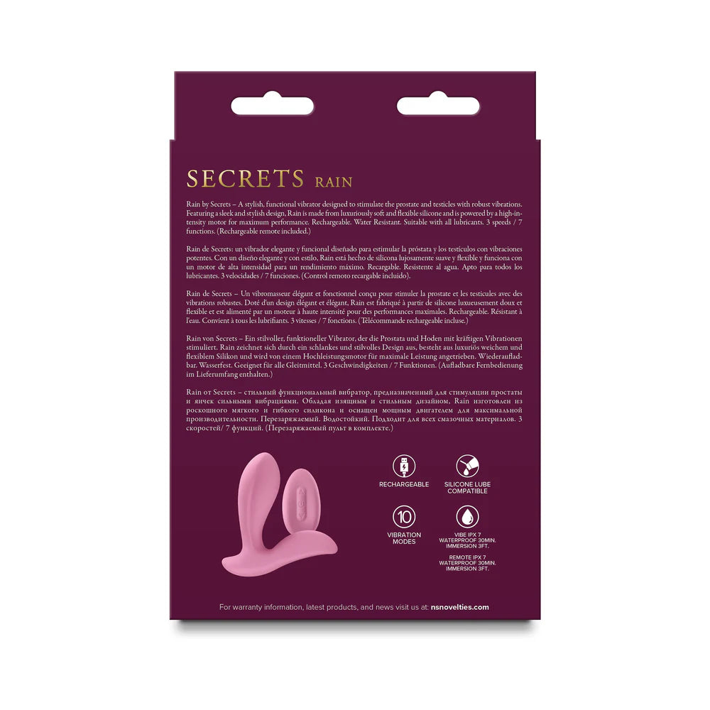 Rain by Secrets – A stylish, functional vibrator designed for robust vibrations. Featuring a sleek and stylish design, Rain is made from luxuriously soft and flexible silicone and is powered by a high-intensity motor for maximum performance. Rechargeable. Water Resistant. Suitable with all lubricants including silicone. Rechargeable remote included.