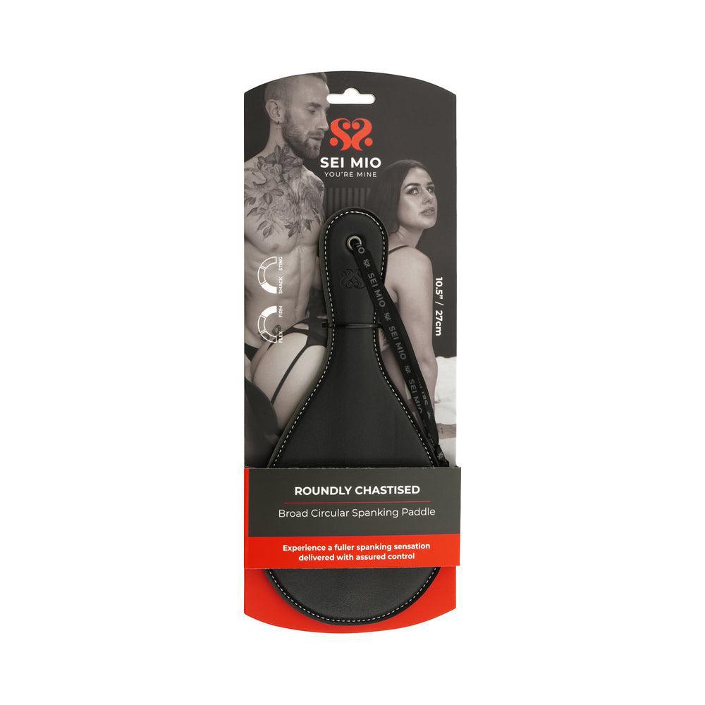 Take sensation play to new depths with the Sei Mio Roundly Chastised Spanking Paddle, designed with an expansive circular surface to deliver maximum impact. Wider than traditional paddles, this broad beauty ensures each swing reaches every inch of your partner's posterior, spreading sensation for a satisfyingly deep, full-bodied response.