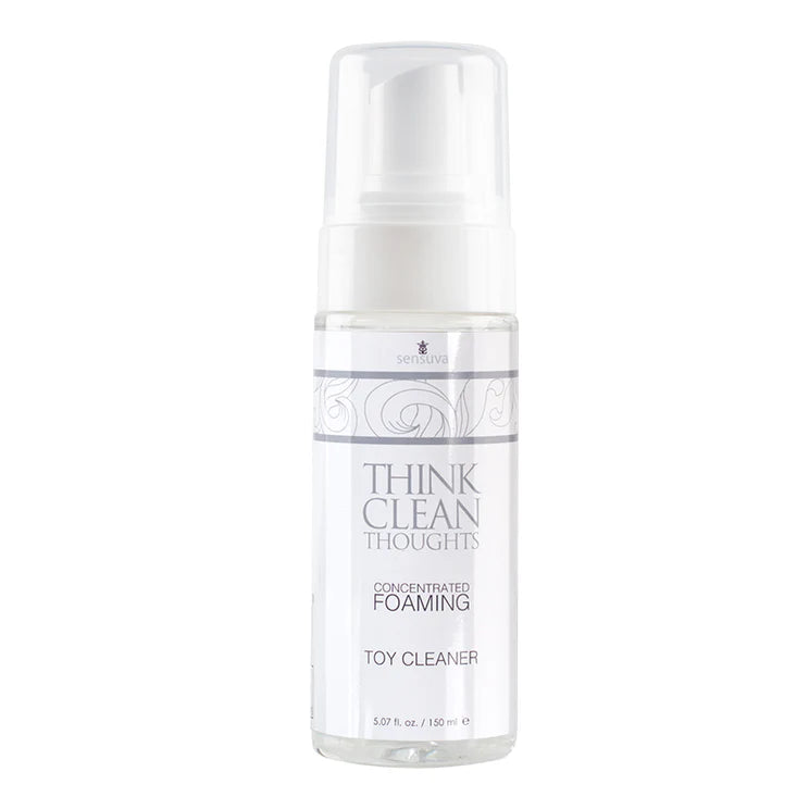 Think Clean Thoughts is a better choice for cleaning pleasure products than standard bar hand and body soaps because it is oil-free and will not break down toy materials, nor does it leave any residue that may be irritating to delicate tissue.