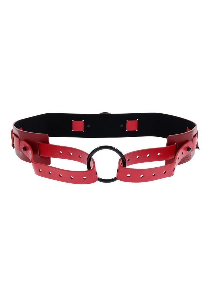 Explore both elegance and discipline with the Ex's & Oh's Bound and Belted restraint. Crafted entirely from faux leather, this belt features a striking contrast between its two toned red accents, adding a touch of sophistication to your collection. With 2 D Rings and 2 O Rings, this belt offers multiple attachment points for cuffs, ropes, or other accessories, making it perfect for a variety of bondage scenarios.