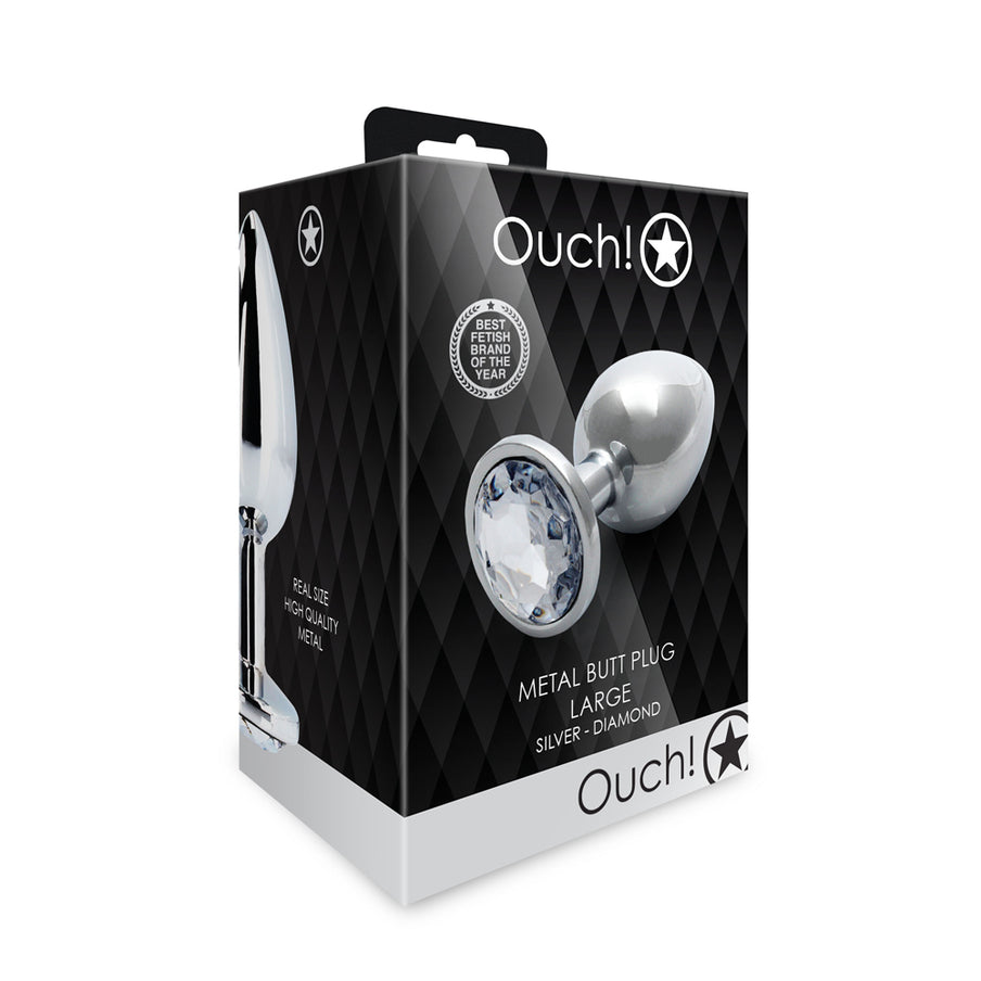 Shots Ouch! Round Gem Butt Plug Large Silver/Diamond