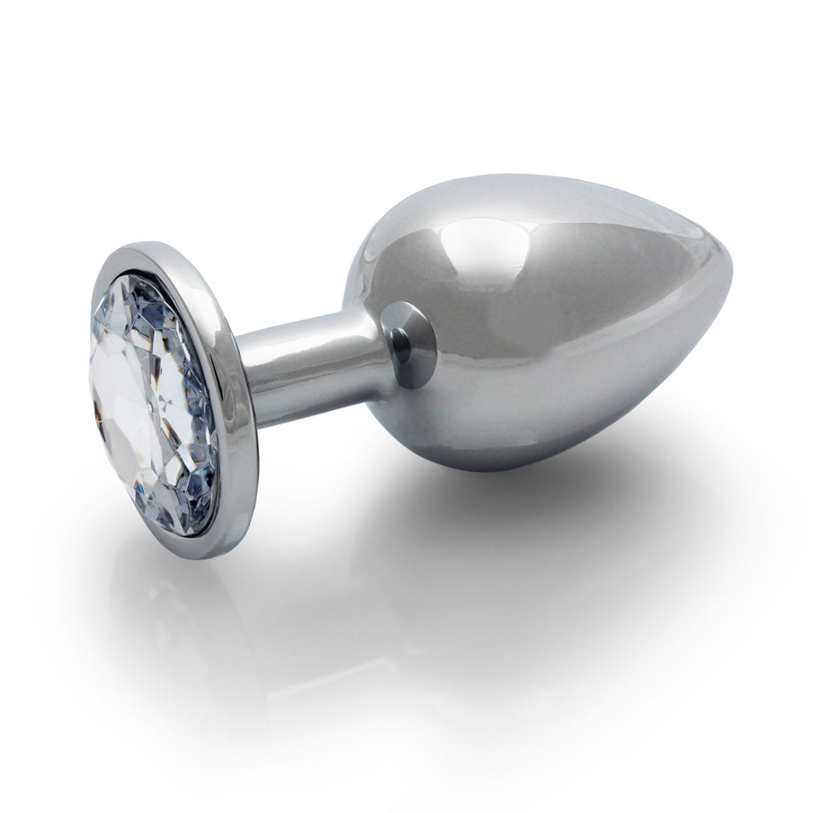 Shots Ouch! Round Gem Butt Plug Medium Silver/Diamond