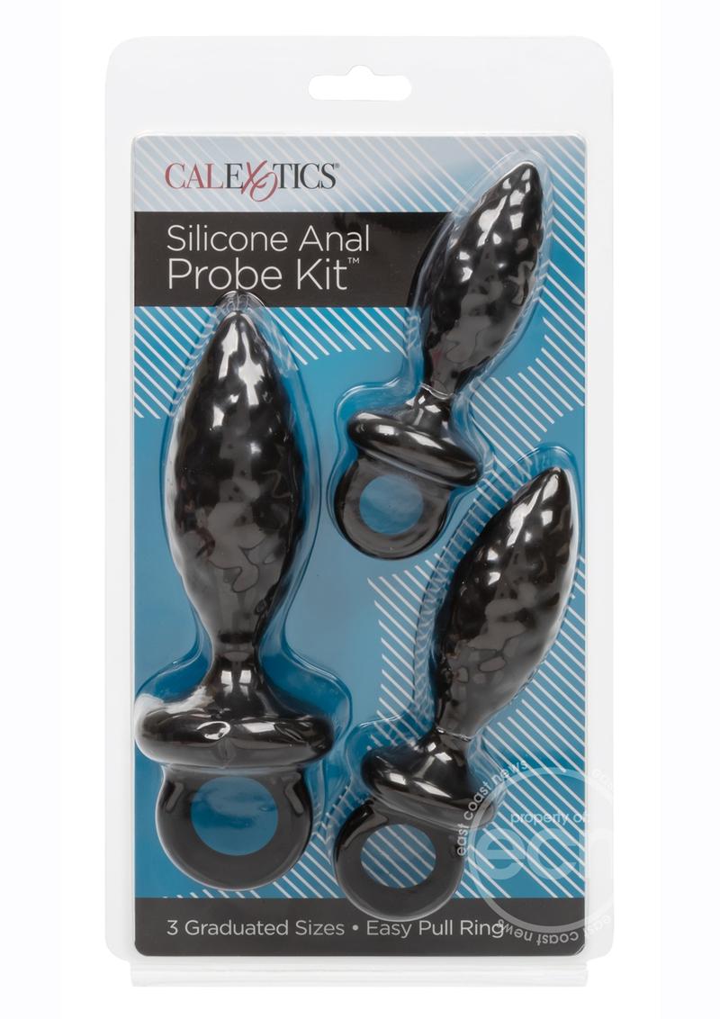 Premium Silicone anal training kit with incredible texture. Tapered design with easy pull ring. 3 graduated sizes. Pliable and durable. Hygienically superior and body-safe Silicone.
