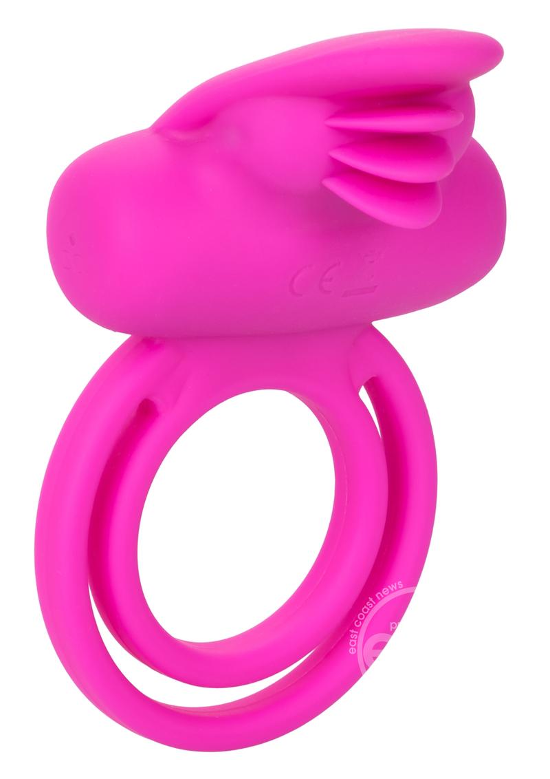 Silicone Rechargeable Dual Clit Flicker Vibrating Cockring Multispeed Waterproof Pink
