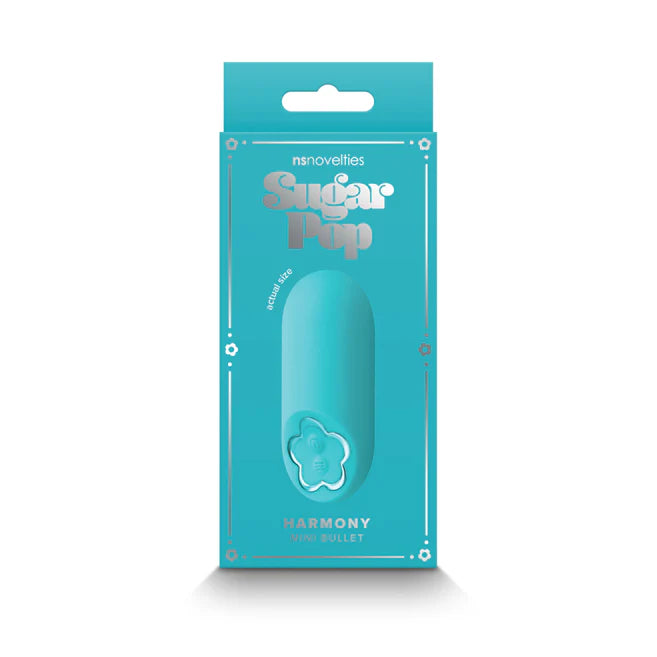 Harmony by Sugar Pop. A discreet mini vibrator that fits comfortably in the palm of your hand. Made of platinum-grade silicone, Harmony delivers intense pleasure and satisfaction with 8 patterns of vibration. Water resistant, rechargeable, and suitable with all lubricants.