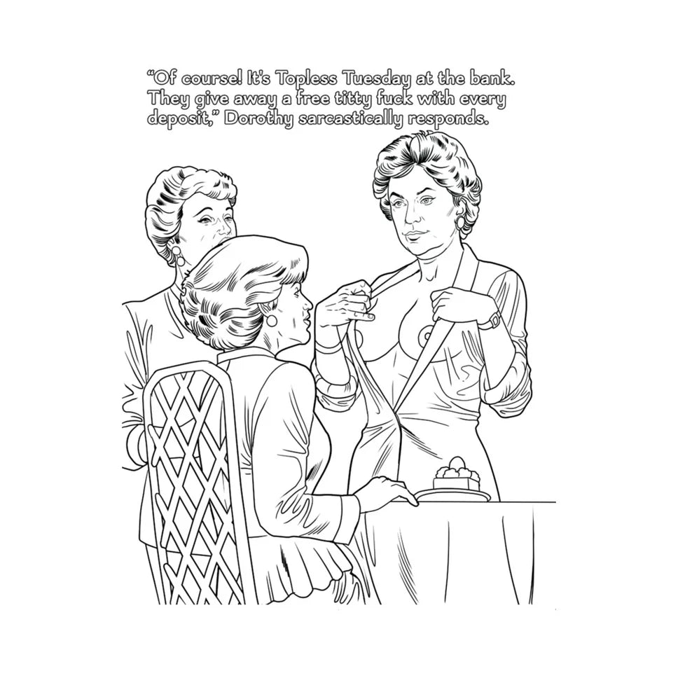 The Golden GILFS Adult Coloring Book is a 30-Page parody brought to you by the studio famous for porn parodies like SpongeKnob SquareNuts. What happens when your favorite Miami seniors accidentally end up at a gang bang? Silliness and sexiness ensues with Dorothy, Blanche, Rose, and Sophia!