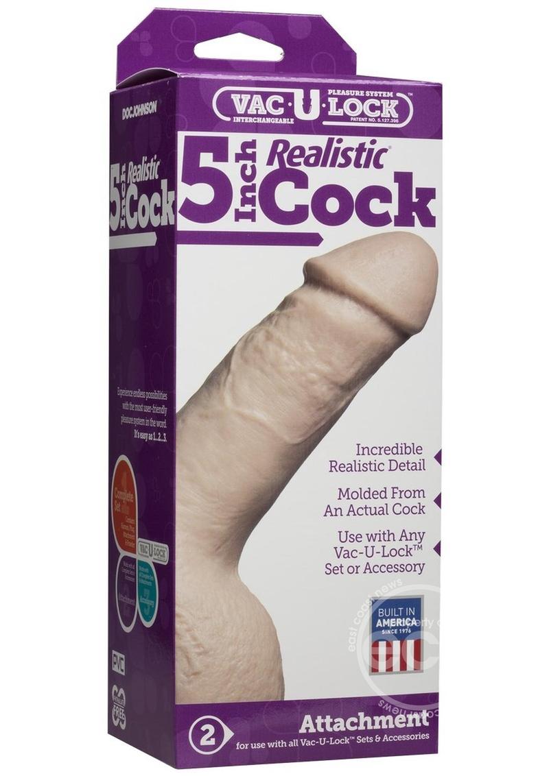 Take in all 5 inches of this Realistic Cock Vac-U-Lock attachment. The bulging veins, plush balls, and hand painted detail will have you falling in love! Works with all Vac-U-Lock systems. Proudly Made in America. phthalate-free, body-safe.