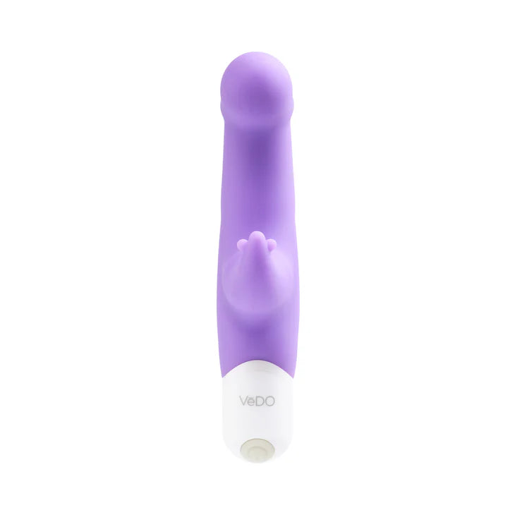 Designed to stimulate the G-spot with the gently curved phallic shaped head while you stimulate your clitoris with the flexible rabbit tickler. The silicone and ABS plastic vibe has 5.5 in. of insertable length with a 1.2 in. wide curved head and wide shaft. The clitoral stimulator is about 0.5 in. wide and 1.375 in. long. Features 12 vibration modes. Operates for up to 3 hours on 2 AAA batteries, not included.