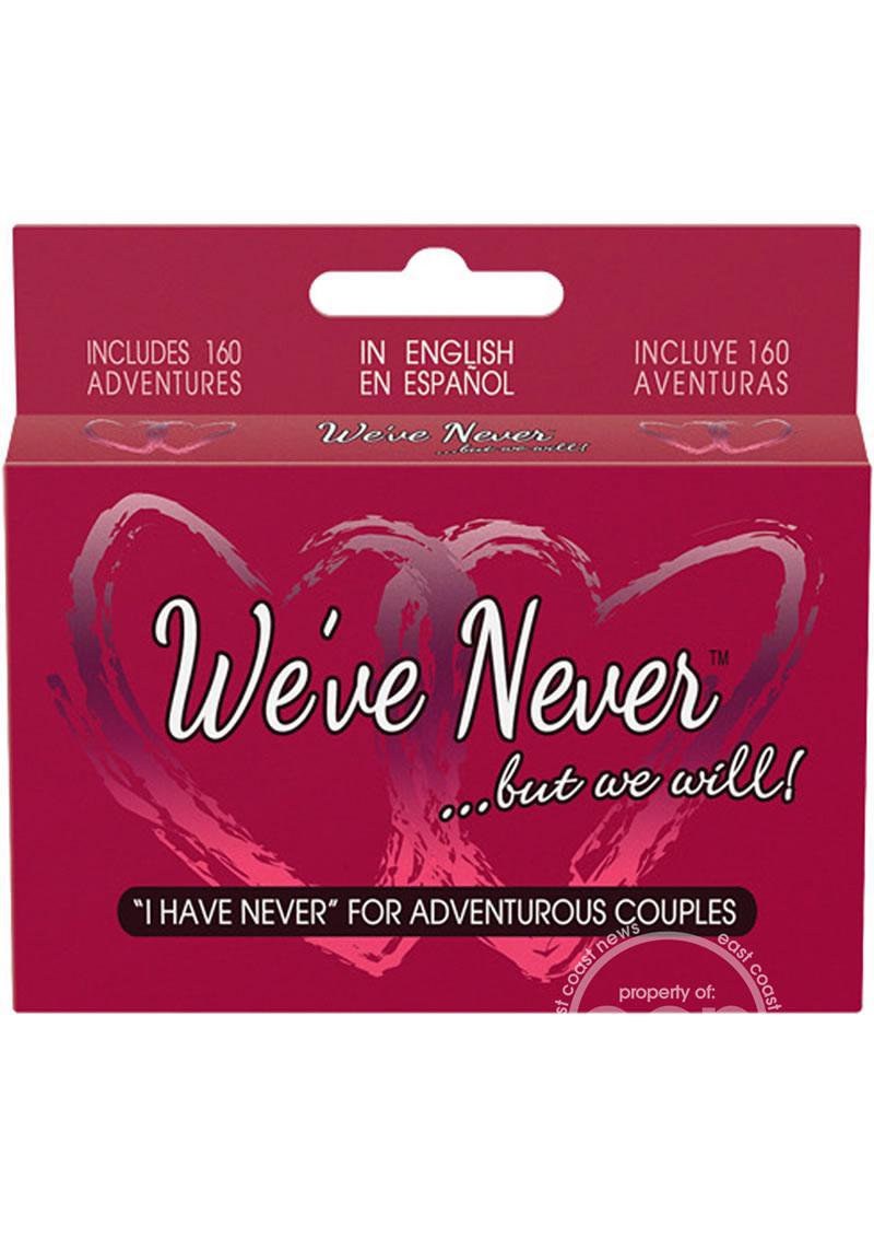 A couple reads the cards and celebrate what they have done together. If they haven’t done the sexual activity, but decide that they want to, they save the card and toast to the adventure. Includes: 40 Location, Location cards; 40 Fun and Games, and Toys, Toys, Toys! Cards; 40 Erotic Edibles and Other Indulgences cards; 40 Fantasy and Role-Play cards; 2 ...but we will! envelopes; 1 spinner and game rules.
