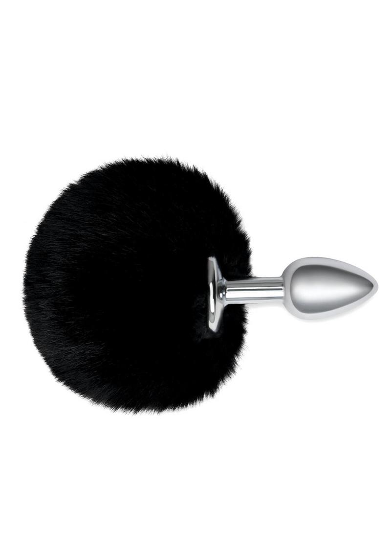 Hop into satisfying backdoor play while exploring wild fantasies with this convenient set. Made of sleek metal, it features a fluffy, black bunny tail attachment for a playful look. This 2.5" plug is perfect for beginners and comes with reusable talon claws for added sensory pleasure, as well as an easy-to-use douche.