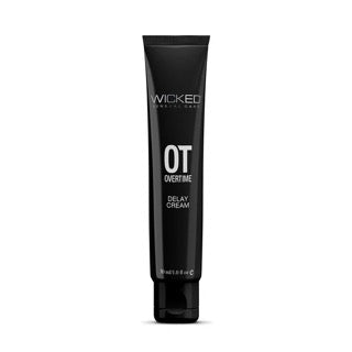 Wicked Sensual Care Collection OverTime Delay Cream for Men contains 5% Benzocaine to temporarily reduce hyper-sensitivity to delay ejaculation. Cleans away easily with mild soap and water. Tube contains 30 ml/1 fl. oz.