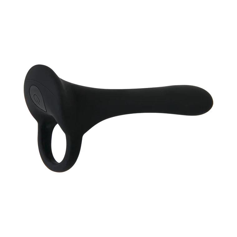 Give yourself an armored advantage with this unique cock ring that stands alongside your member to add strength and girth for more intense couples play. Made from creamy smooth silicone, the flexible shaft moves with your body and gives you and your partner a choice of twenty different speeds and functions for a custom experience. Enjoy this toy in the bath or shower as its completely submersible, and recharge anytime so your pleasure never runs out! Cock ring with long bullet Perfect for adding girth to couples play Flexible shaft moves with your body Made from creamy smooth silicone 20 powerful vibrating functions Blue LED light in button for stylish visibility Height: 5.53, Depth: 2.77, Width: 1.7 Weight: 2.5 oz Waterproof & submersible Phthalate & latex free Rechargeable, USB cable included